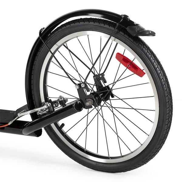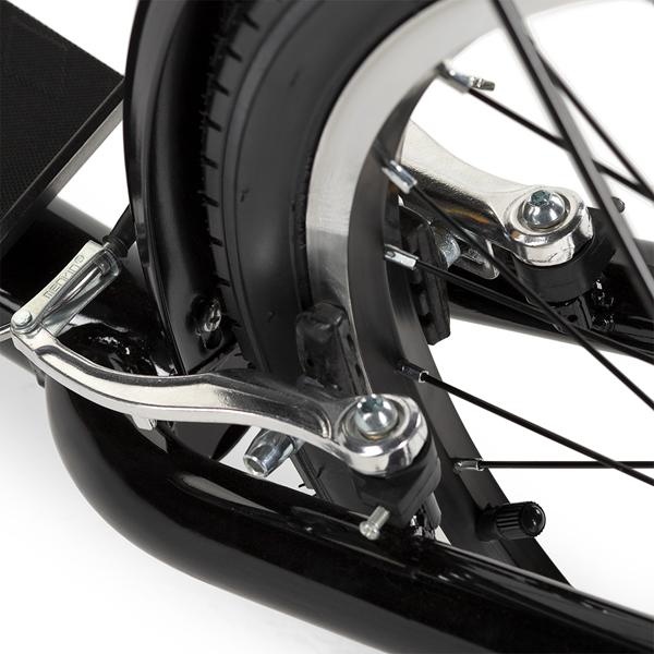 Dieser Roller eignet sich für längere Strecken und anspruchsvolles Gelände. Da die Reifen luftbereift sind, bietet er Dämpfung und Komfort.