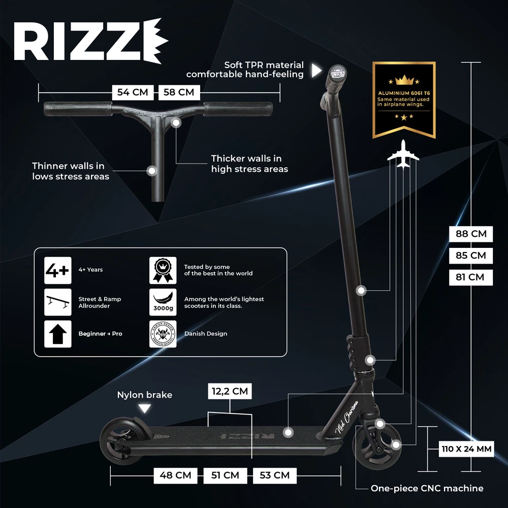 NKD Rizz Stunt-Scooter – Leicht, robust und komplett für Anfänger und Fortgeschrittene – 110-mm-Räder und Deck aus 6061-T6-Aluminium – Kopie