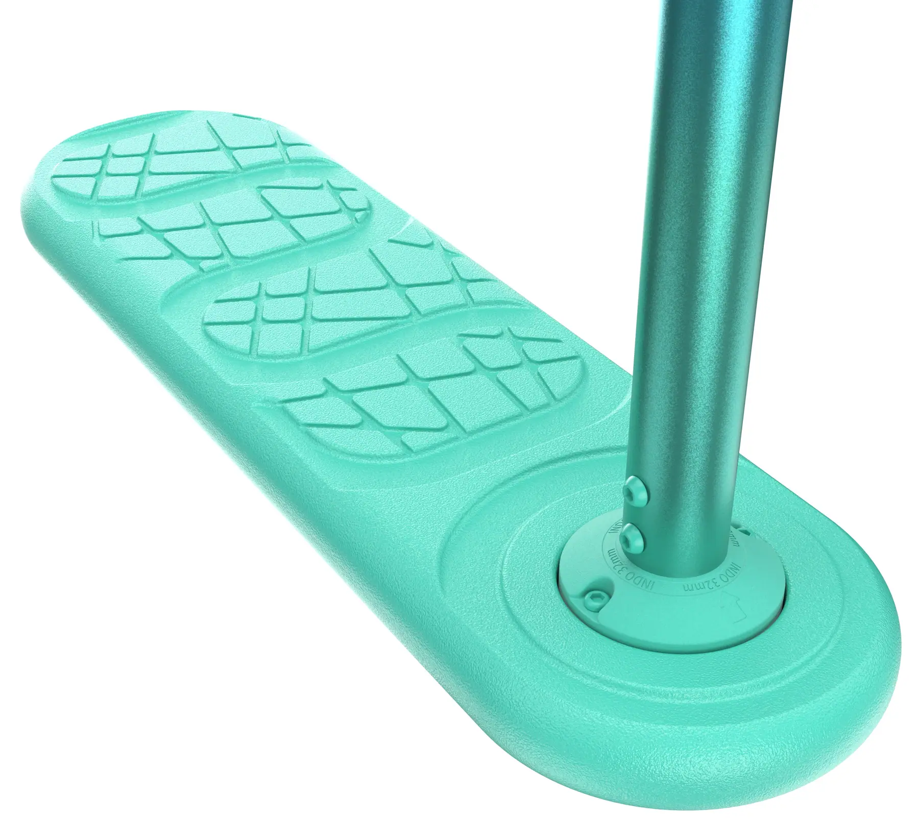 The Indo Kickstart trampoline scooter is designed without wheels, eliminating the risk of slipping. Practice safely on a trampoline or soft surface without the risk of injury from hard surfaces.Adjustable in height