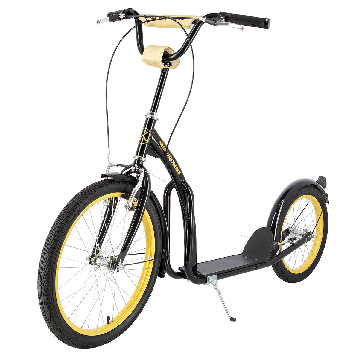 • Nils Extreme WH200 Airstep Black Gold 20/16 inch Airstep Scooter with Pneumatic Tires and Large Frame