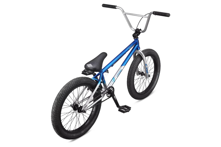 El juego de ruedas tiene neumáticos de 20" x 2,3" montados sobre llantas de aluminio de pared simple 36H. El juego de ruedas de esta bicicleta también cuenta con un buje delantero con eje hembra de 3/8” y un buje trasero con casete de rodamiento sellado y piñón 9T.