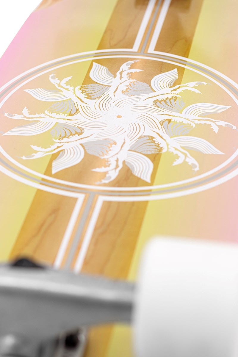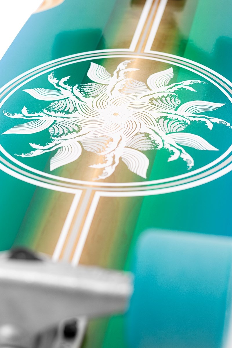 Para la dirección, este modelo está equipado con ejes Mindless Surf Skate . Estos ejes están diseñados para permitir un amplio radio de giro y son muy sensibles a pequeños movimientos de dirección. Esto crea una sensación de conducción dinámica que permite iniciar los giros con profundidad y suavidad.