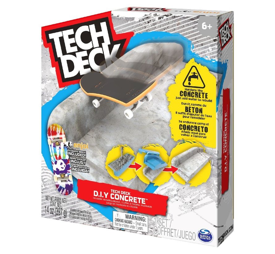 Desafía a tus amigos, desarrolla tus habilidades y construye tu colección Tech Deck. Crea tus propios obstáculos con el juego de modelado de hormigón DIY Tech Deck reutilizable.