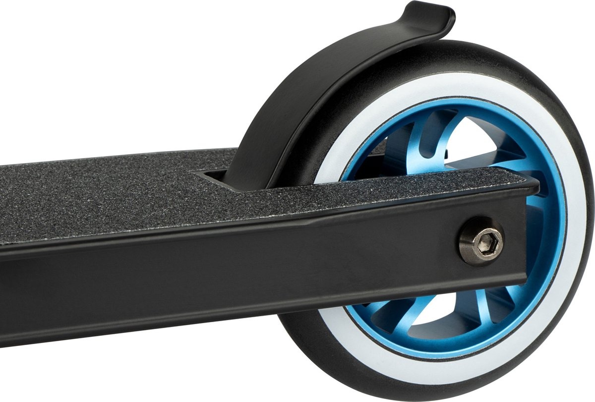Les roues de 100 mm sont fabriquées en polyuréthane (PU) durable et offrent un roulement fluide grâce à des roulements ABEC 7 de précision. Cette combinaison garantit une conduite souple et maîtrisée, alliant vitesse et adhérence. Les roues sont suffisamment grandes pour rouler confortablement sur l'asphalte et le béton, tout en étant assez petites pour une grande réactivité lors des figures. Le frein arrière, un garde-boue flexible fiable et facile à utiliser, assure un freinage contrôlé sans endommager les roues.