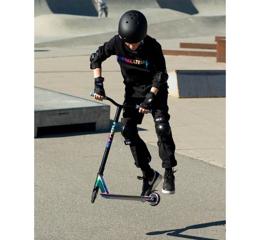 Story Outlaw è uno scooter acrobatico per bambini dai 3 agli 8 anni. Lo scooter è destinato ai principianti che vogliono praticare i loro primi trick. Questo scooter può essere utilizzato per acrobazie e acrobazie per le strade della tua zona residenziale. Lo scooter può essere utilizzato anche per il trasporto e la prima visita allo skate park.