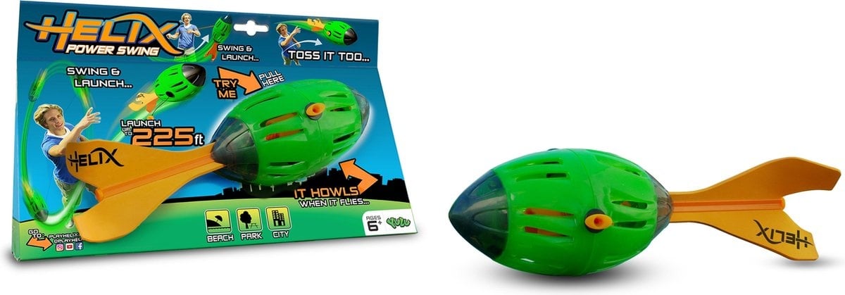 De Helix Hyper Ball is geschikt voor een perfecte buitenspeeldag! De Helix Hyper Ball is een lichtgewicht bal met een speciaal mechanisme en is van zakformaat. Houd het touw vast en zwaai om snelheid te krijgen. Als de bal hoog genoeg gaat, lanceer je hem de lucht in! Hoe hoog gooi jij? Doe de coolste trucs!