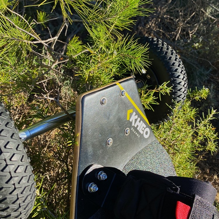 Het Kheo Kicker V4 is ontworpen om elk type terrein aan te kunnen. Of je nu door modderige bospaden raast, over zandduinen glijdt of steile heuvels afdaalt, dit board is gebouwd om je te vergezellen op elk avontuur. Dankzij de grote luchtbanden en stevige trucks biedt de V4 een soepele en stabiele rit, zelfs op het ruigste terrein.