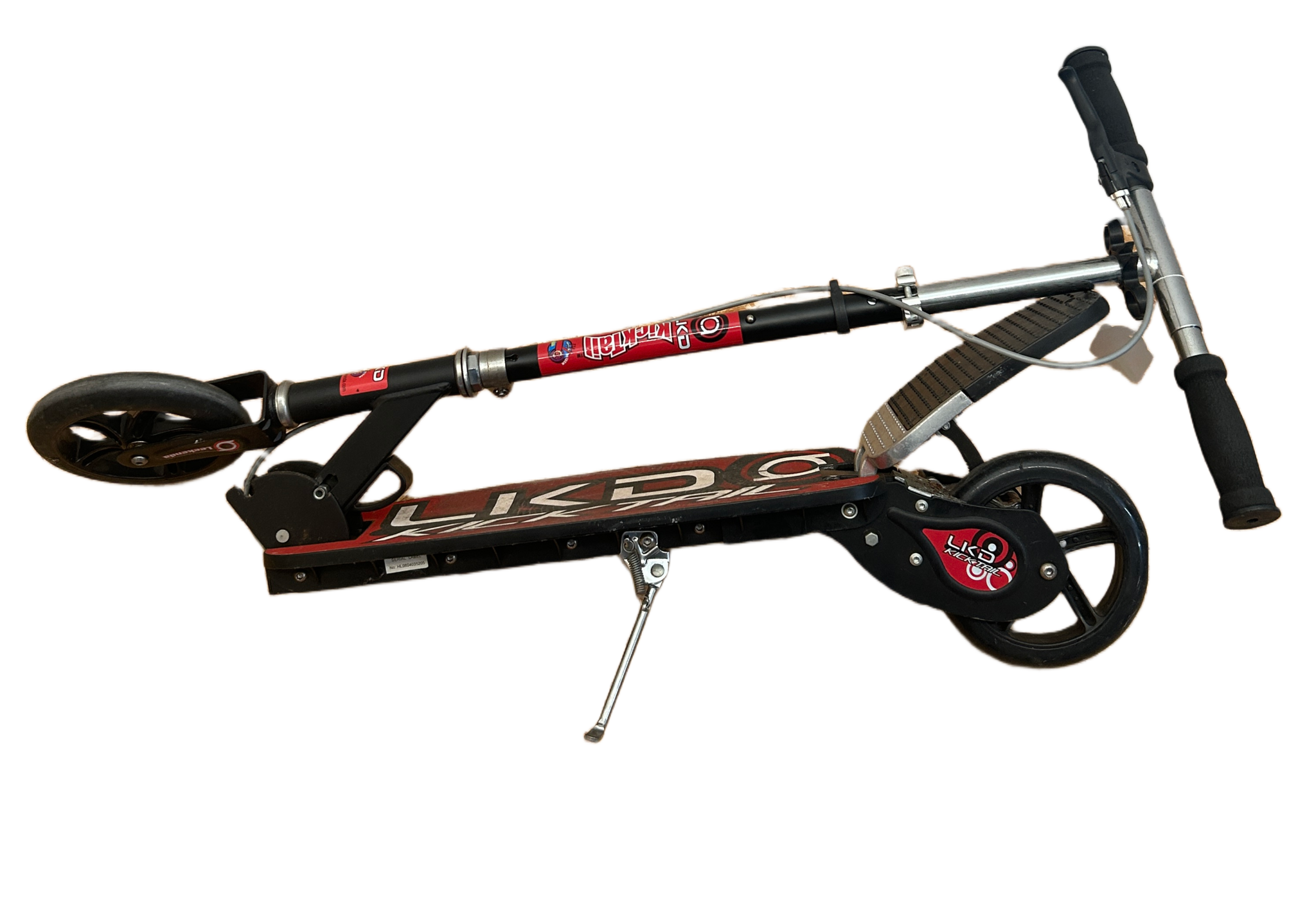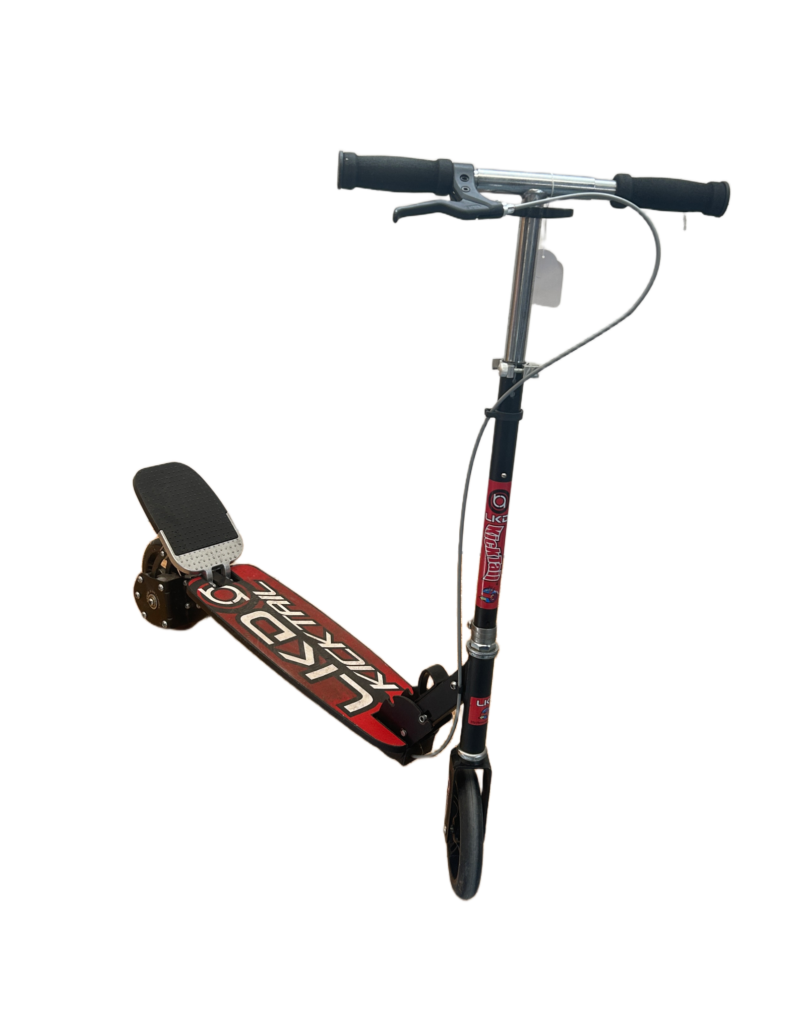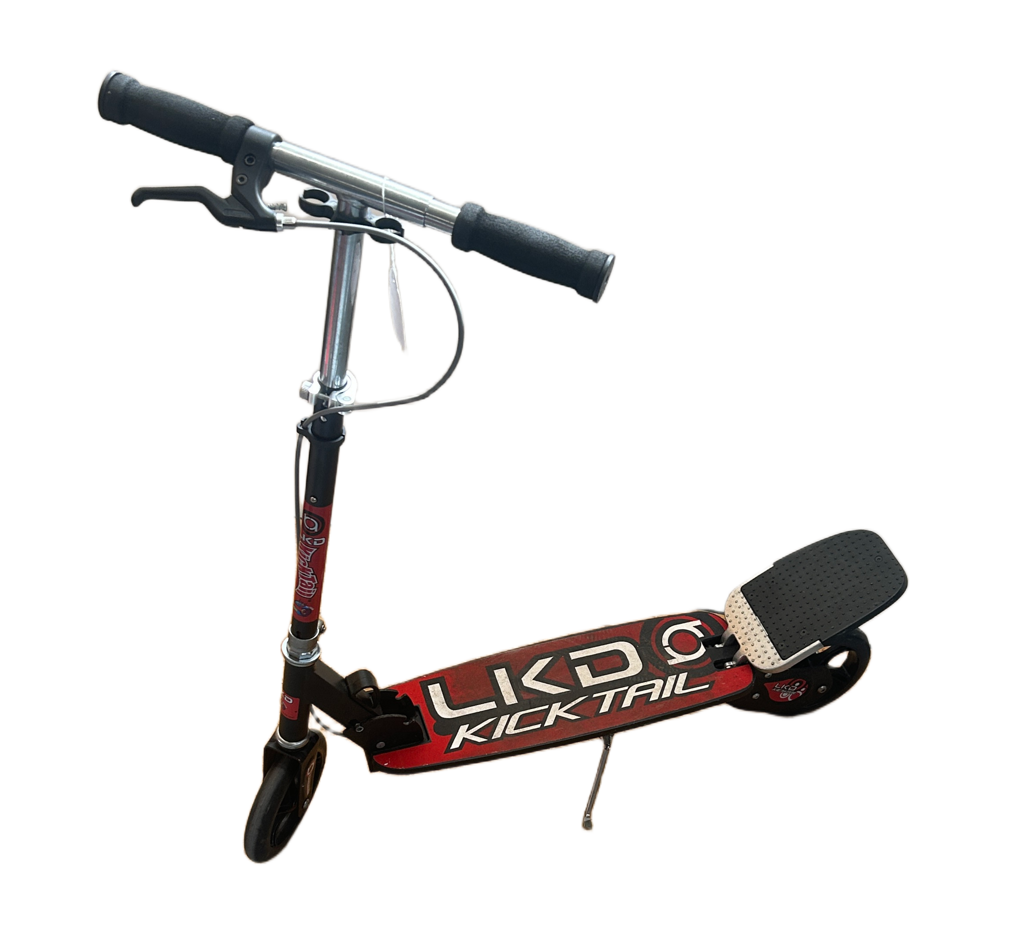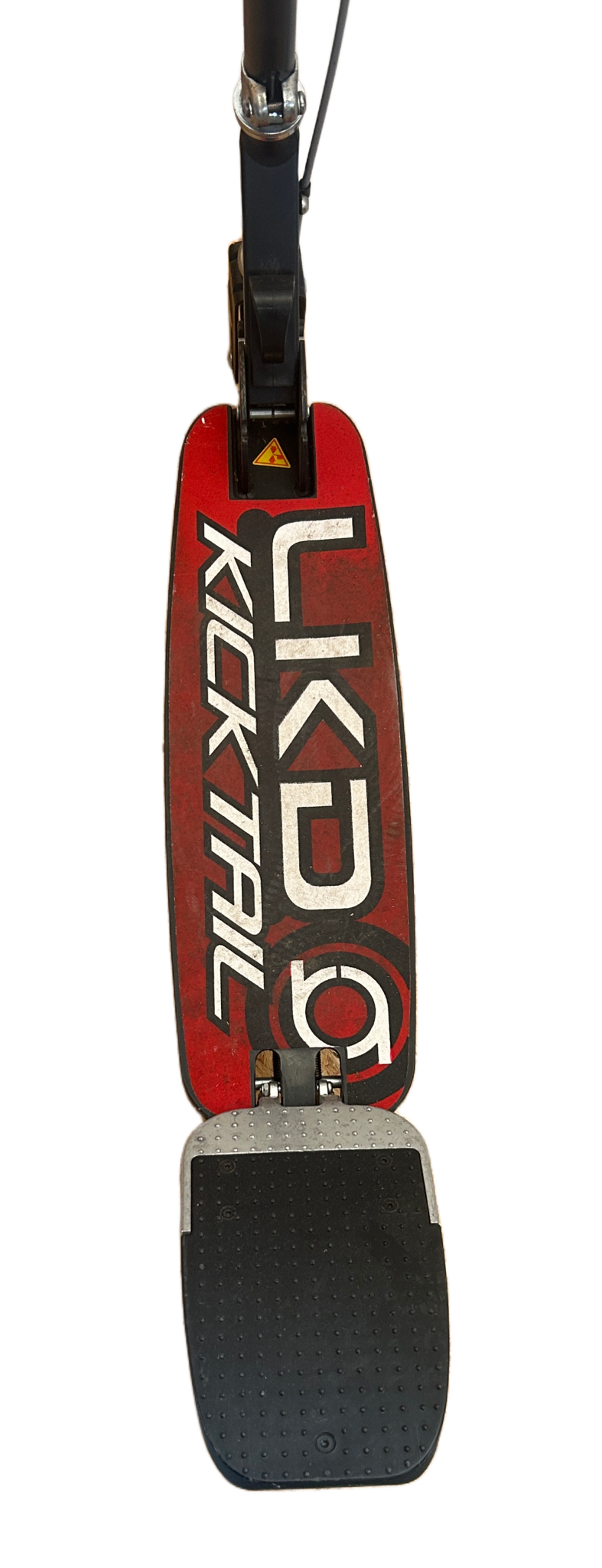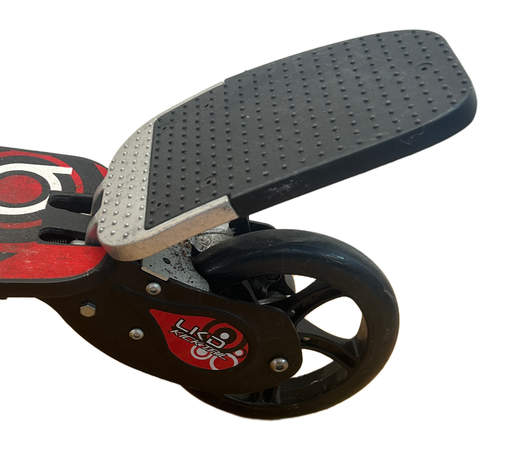 Step met een kick aandrijving op de board bij het achterwiel. Door hiertegen aan te trappen ga je vooruit.
