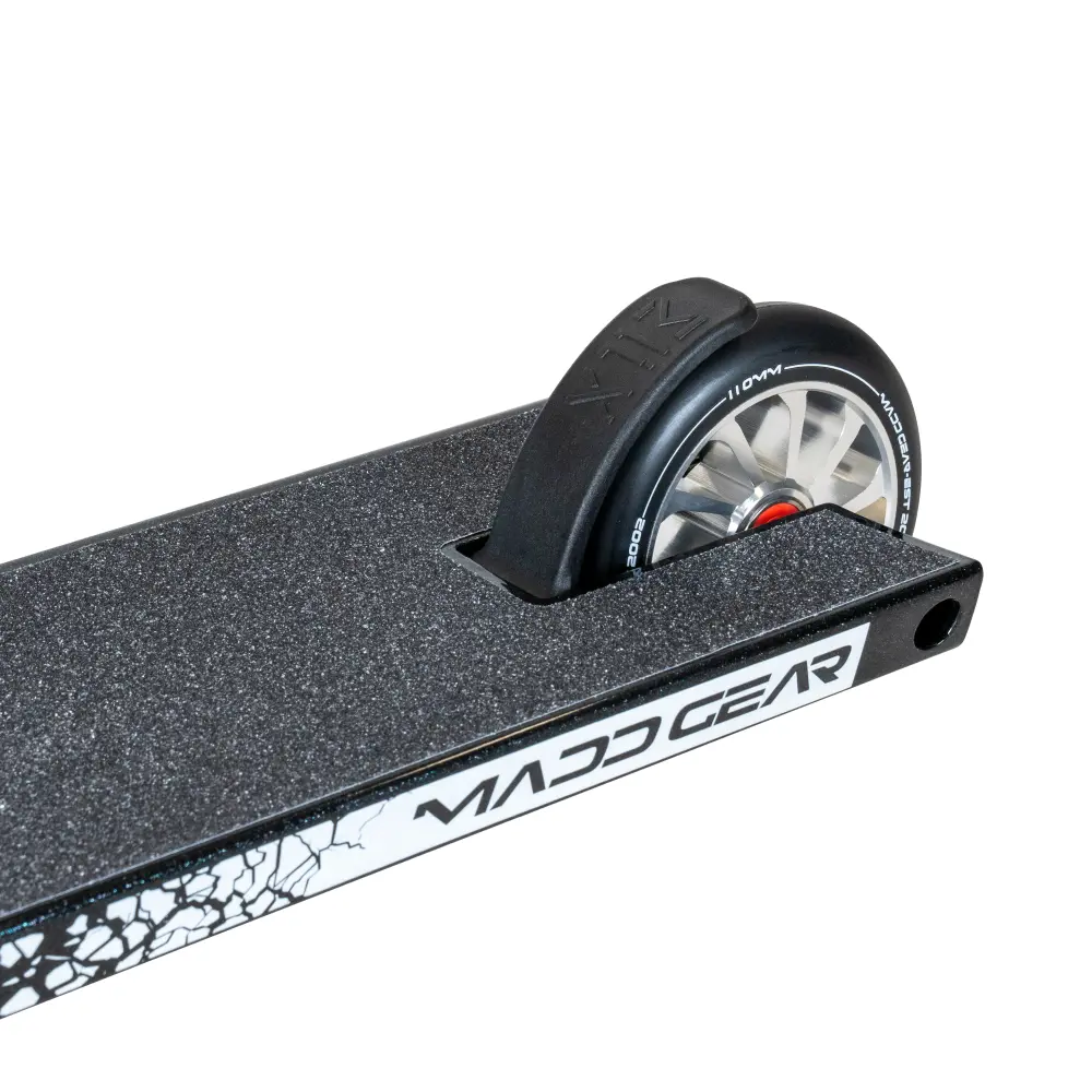 Het deck is gemaakt van lichtgewicht, hittebehandeld aluminium en meet 52 cm lang en 14 cm breed (ongeveer 20,5 x 5,5 inch). Deze afmetingen bieden een perfecte balans tussen stabiliteit en wendbaarheid, waardoor je soepel kunt landen na sprongen en precisie behoudt tijdens grinds. Het deck is voorzien van MGP’s kenmerkende Flute-Tech ontwerp, dat extra stevigheid geeft zonder onnodig gewicht toe te voegen.
