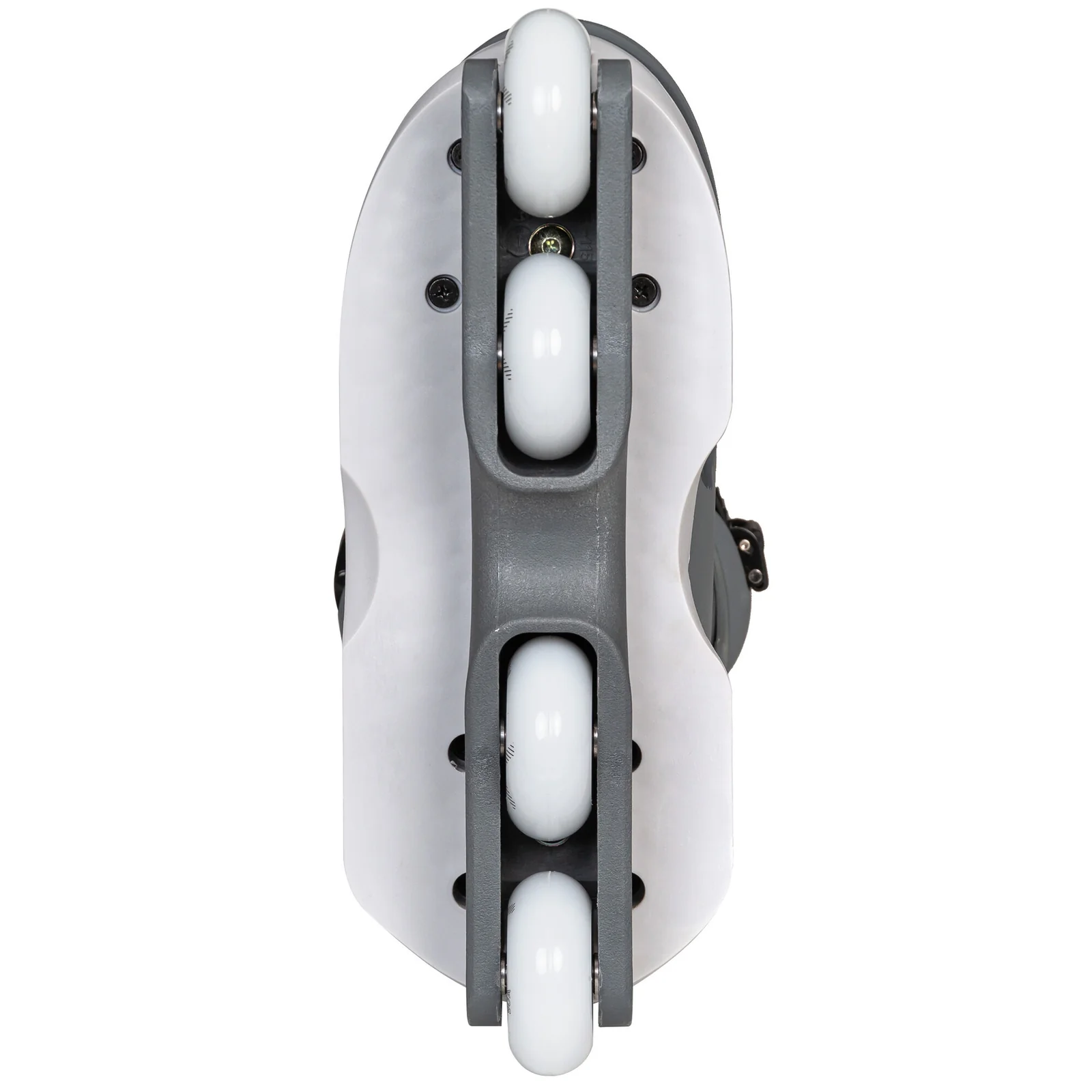 De skates zijn voorzien van een hardshell boot die ondersteuning en bescherming biedt tijdens intensief gebruik. De schaal zorgt voor een stabiele pasvorm en helpt de voet goed op zijn plaats te houden tijdens landingen en snelle richtingsveranderingen. De uitneembare liner draagt bij aan comfort en maakt het eenvoudig om de pasvorm te beheren.