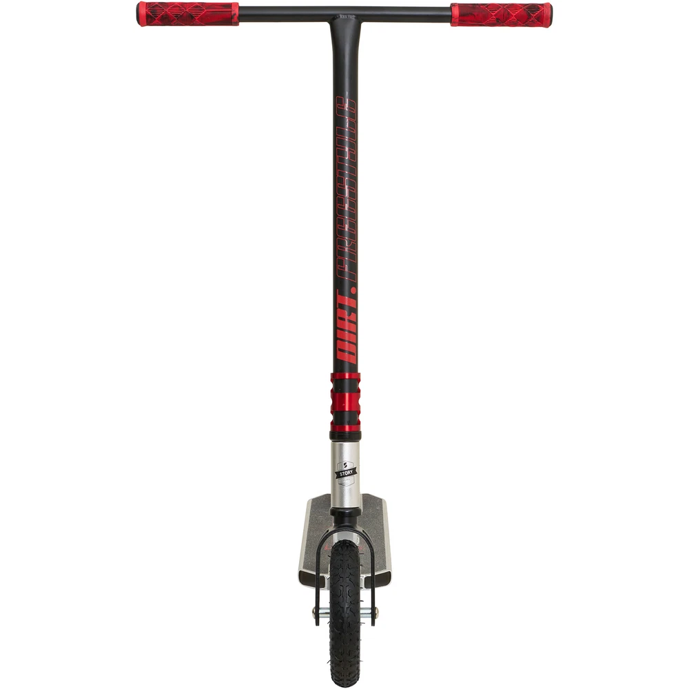 Story Dirt Freestyle Step Silver / Red- Robuuste Offroad Stuntstep met Luchtbanden & Stalen Frame