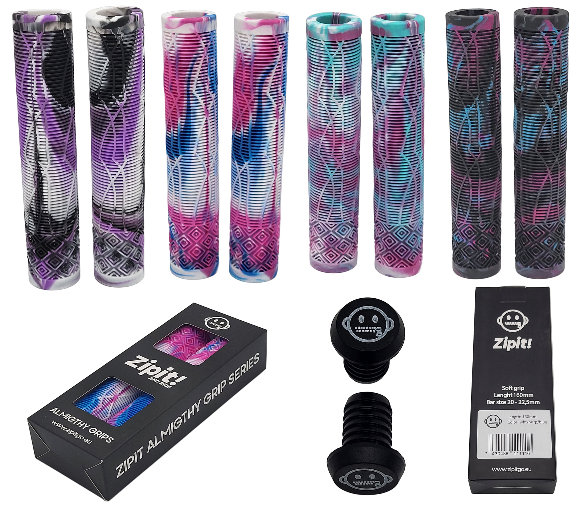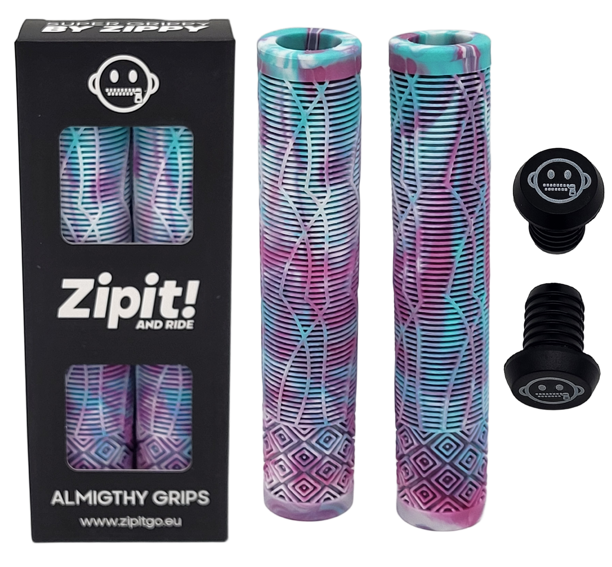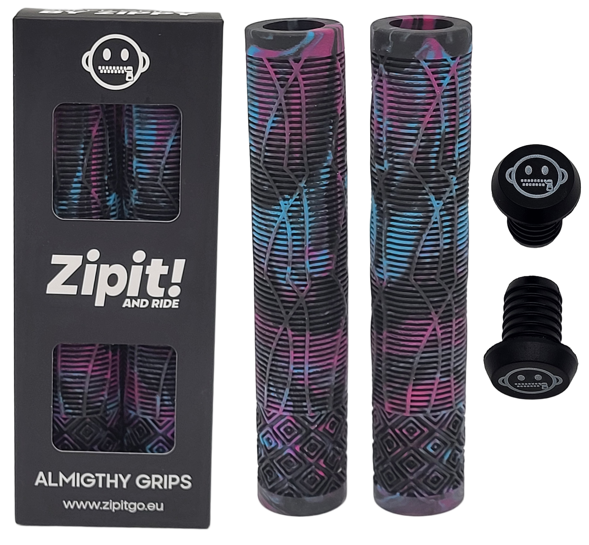 Zipit Almighty Grips 160mm Flangeless Stuntstep & BMX Grips – Triple Color – Inclusief Bar Ends