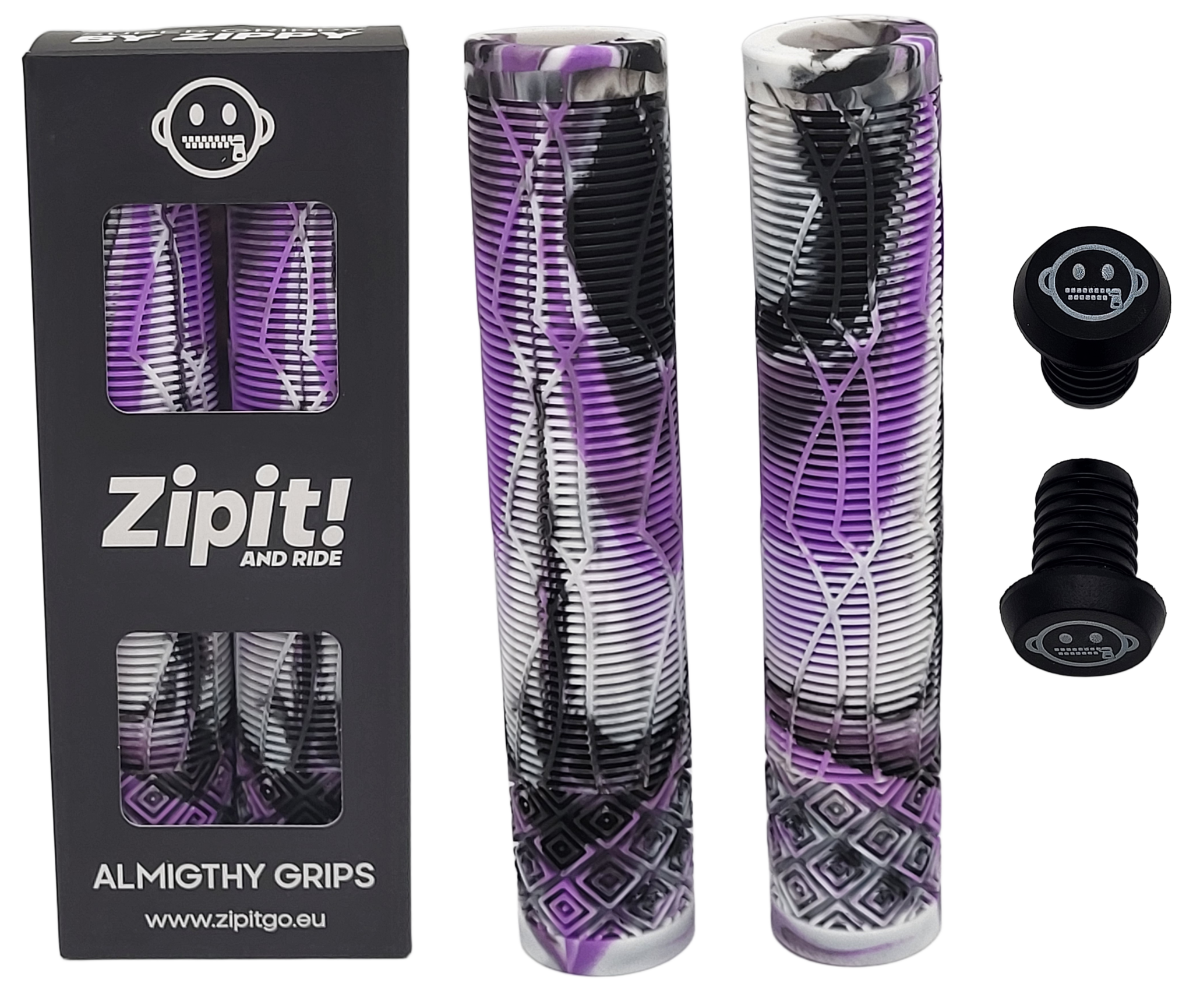 De Almighty Grips worden geleverd inclusief branded bar-ends en zijn voorzien van het Zipit Ultimate Grip Pattern.