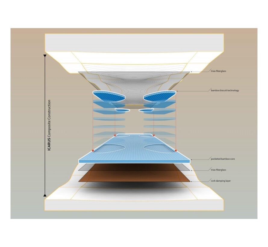 • Wykonanie : Wykonany z połączenia bambusa i włókna szklanego, co tworzy lekką, a jednocześnie niezwykle mocną i trwałą konstrukcję.